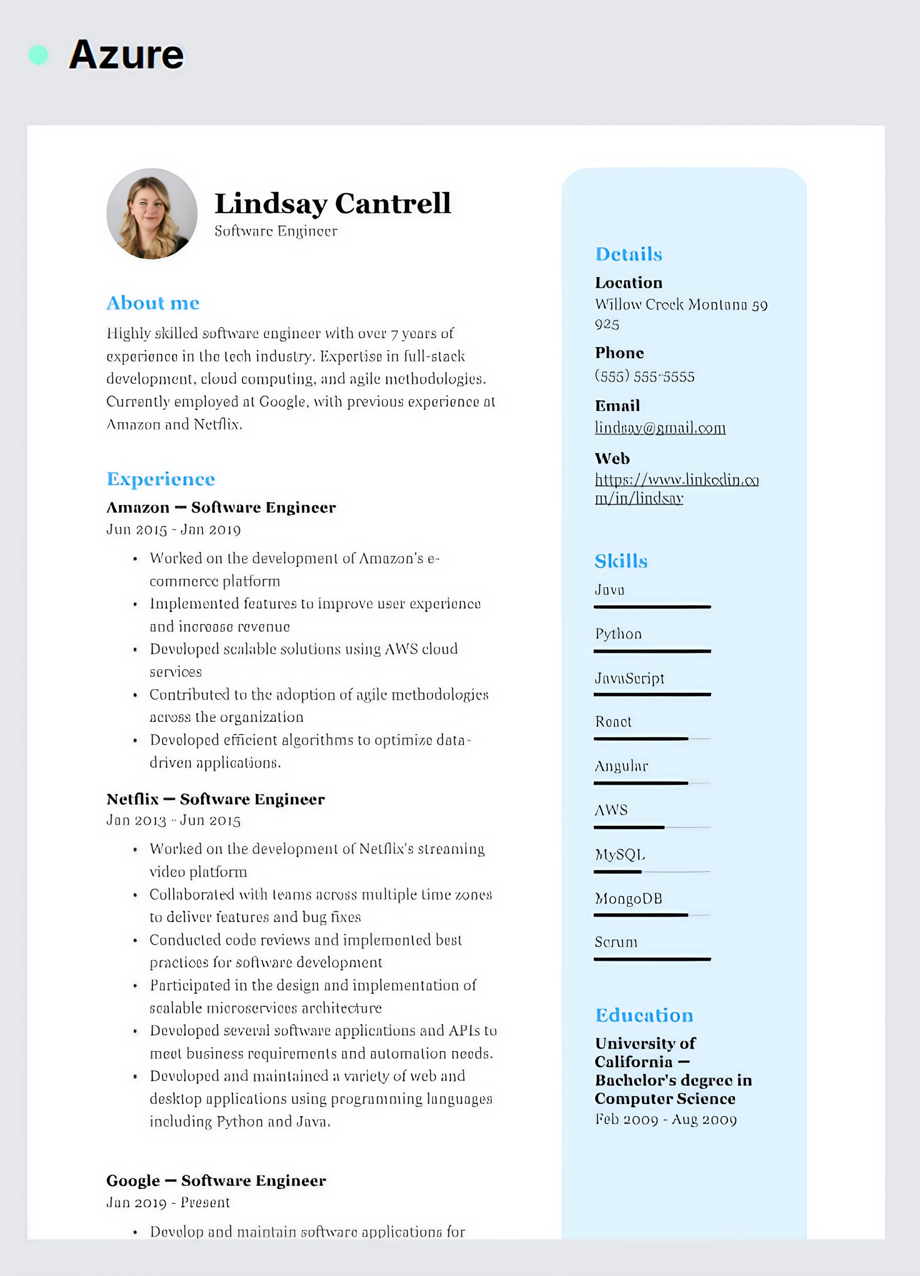 Focus on education, skills, internships, and early career experiences.