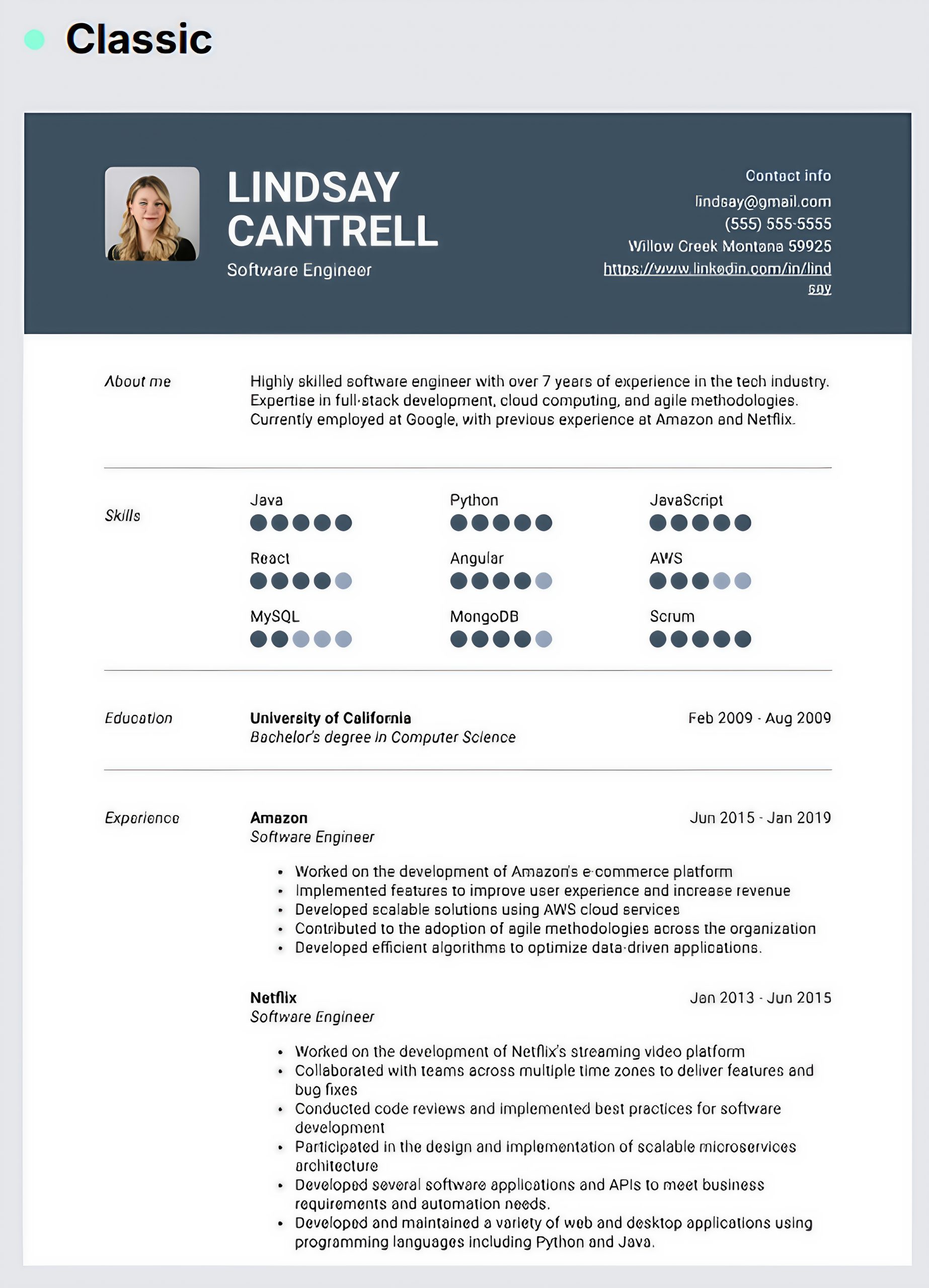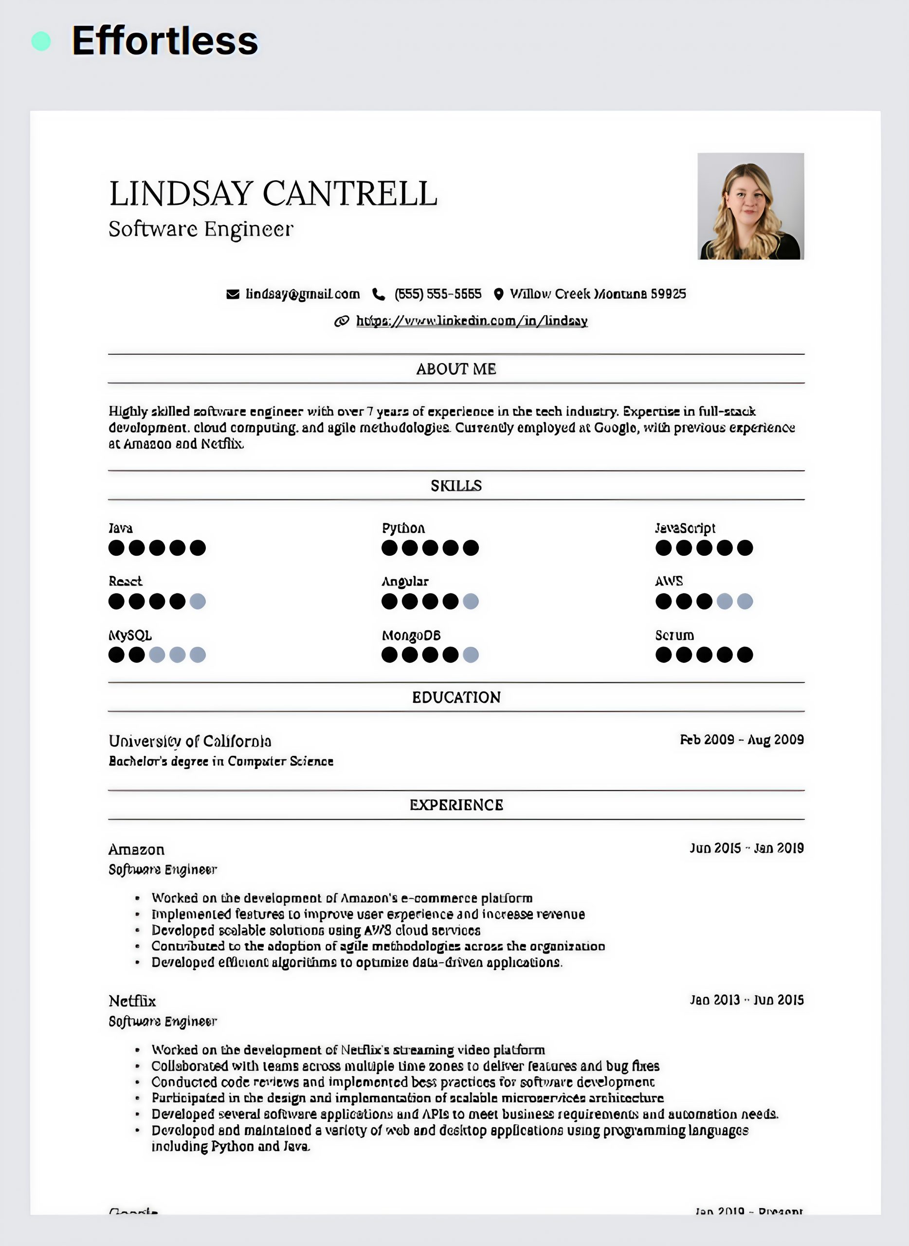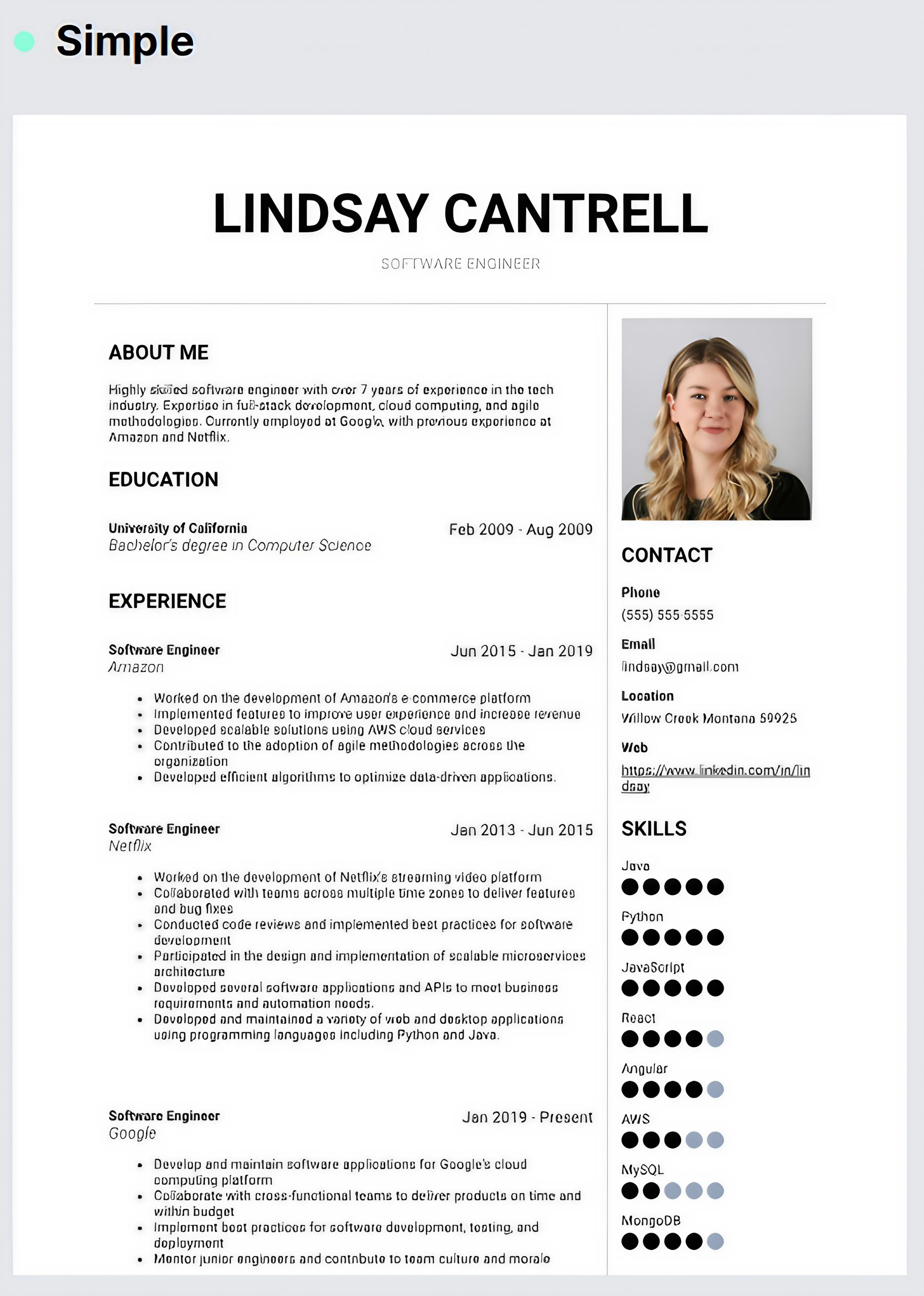 Simple formatting with ATS (Applicant Tracking System) optimization.