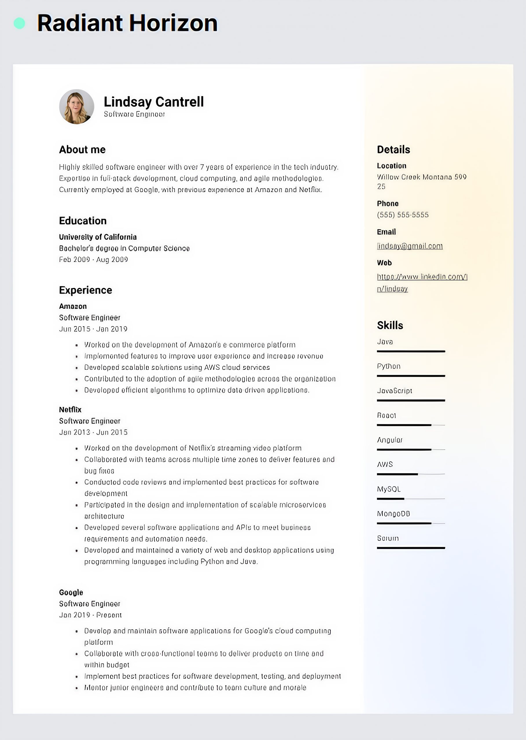 ATS optimization with modern formatting for increased visibility.